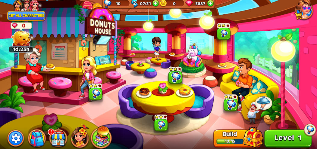 Sirva a los clientes hambrientos para completar combos y recompensas y convertirse en el chef estrella que debía ser. Cocine y hornee una variedad de comidas como hamburguesas, pollo frito, donas, comida marina, pasta y prepare jugos y cócteles y helados y domine sus habilidades en cada cocina.
