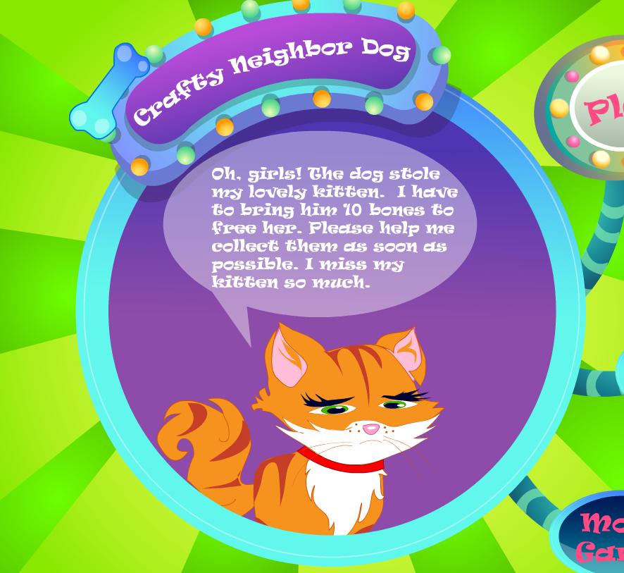 Por la mañana, cuando me desperté, encuentro que mi encantadora gatito robó al Crafty Neighbor Dog y, para recuperarla, tengo que traer 10 huesos. Únase a este juego amoroso y ayúdame a descubrir los 10 huesos lo antes posible para liberar a mi gatito. Como saben, tenemos que vigilar de cerca el temporizador también, porque el trabajo debe hacerse en el tiempo, de lo contrario todos los esfuerzos serán en vano.