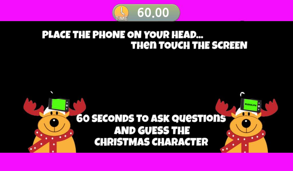 Tan fácil de jugar es genial para todas las edades: ¡jóvenes y viejos! Simplemente toque el botón Inicio Sostenga su dispositivo en su frente para revelar el personaje de Navidad a sus amigos. ¡60 segundos para hacer preguntas para adivinar qué personaje de Navidad eres! Sus amigos solo pueden responder sí o no, así que elija sus preguntas con cuidado.