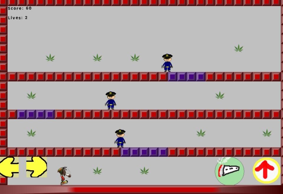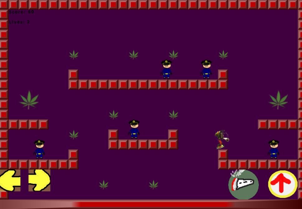 Juego en el que eres un Rastafarian tienes que llevar todas las hojas de marihuana al siguiente nivel, mira a la policía