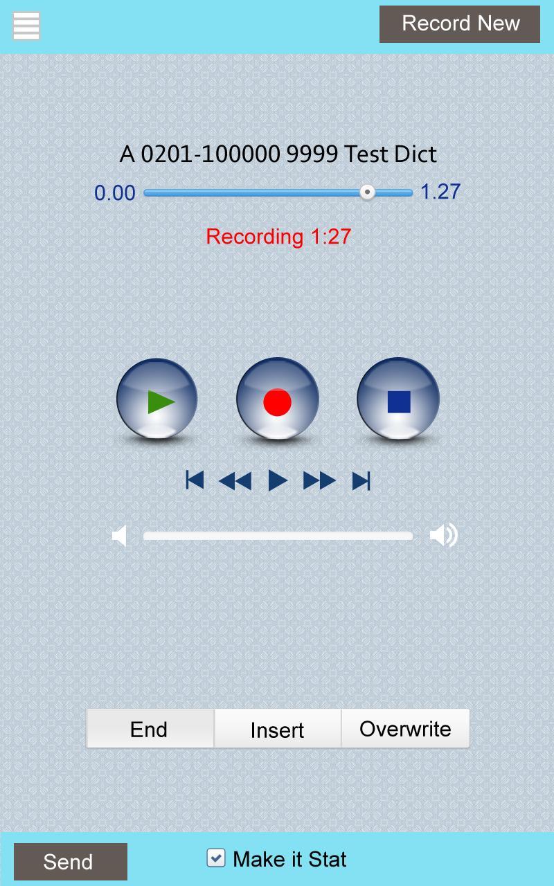 L'application gratuite AAAMT DICTATION est très conviviale à utiliser pour l'enregistrement, la lecture, le rembobinage, l'insérer, l'écraser et l'ajout à la dictée précédente.
