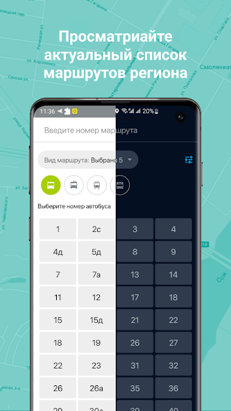 Vous pouvez voir le calendrier des bus, des trolleybus, des tramways et des marshrutkas dans le tableau de bord en ligne de votre smartphone. Choisissez le bon type de transport et le bon moment. Le calendrier est disponible pour tous les jours de la semaine.