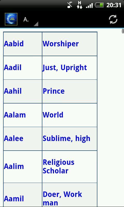 Une liste complète des noms de garçons musulmans avec la brève signification en anglais. Une application facile à utiliser, répertoriée de A à Z. Sélectionnez et faites défiler les noms.