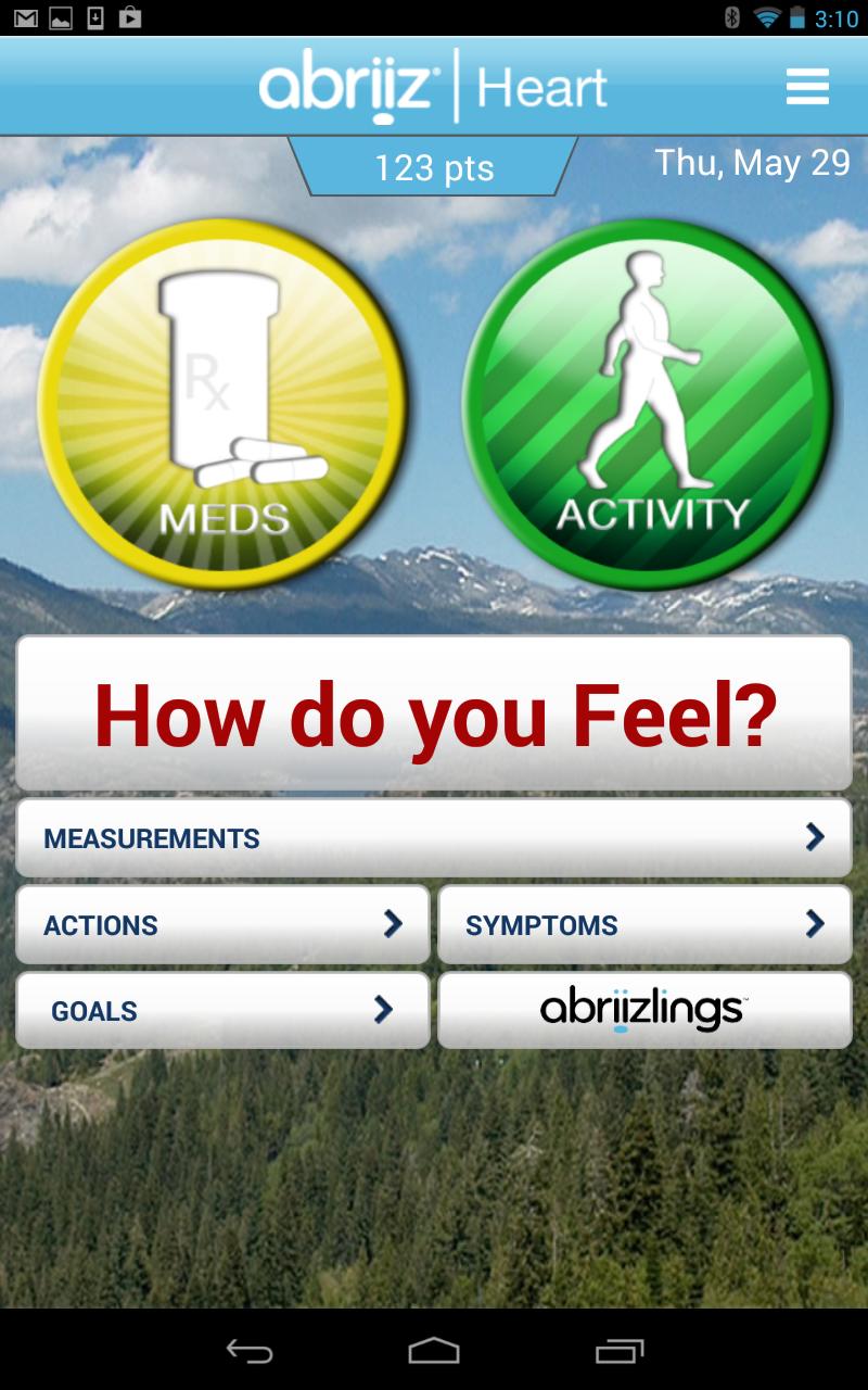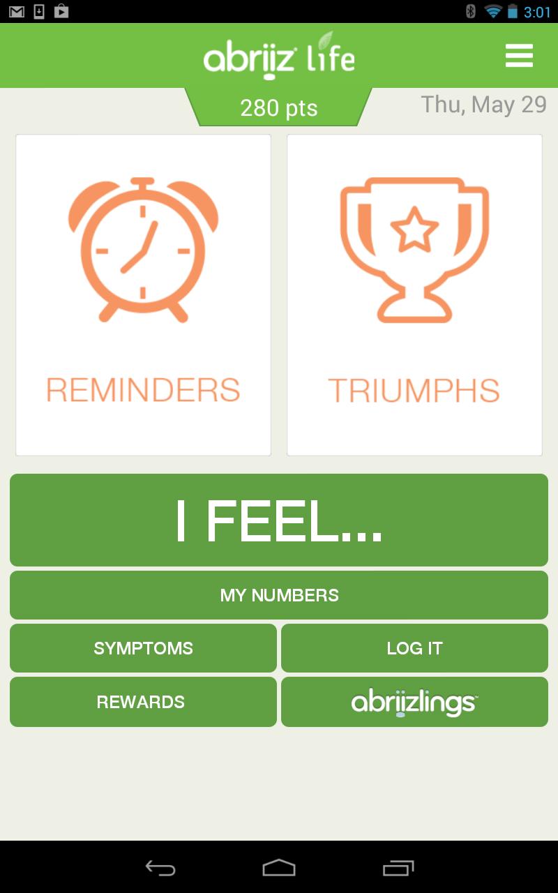 La plate-forme de gestion de la santé Abriiz ® comprend cette application basée sur l'appareil mobile et une application Web. Ce que vous suivez sur votre appareil mobile est communiqué à votre compte Abriiz ® en ligne sécurisé. Connectez-vous à Abriiz ® sur le Web pour voir les tendances graphiques et créer des objectifs d'incitation, et ajouter ou modifier vos données.