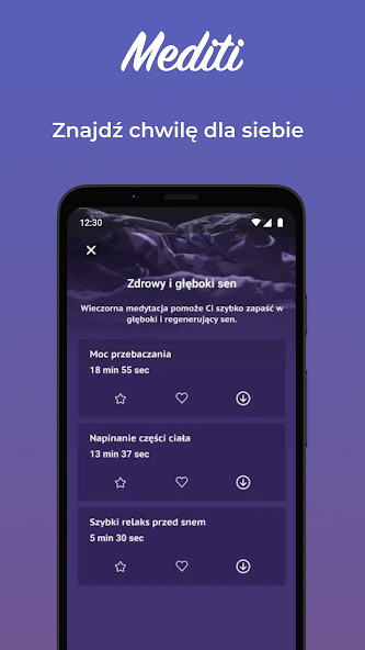 Téléchargez l'application Mediti gratuite et accédez aux enregistrements de méditation adaptés à des situations de vie spécifiques. La méditation régulière vous aidera à mieux faire face au stress et à tirer plus de joie de la vie quotidienne.