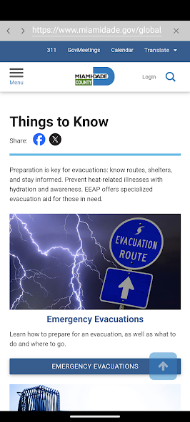 L'application mobile Ready Miami-Dade fournit aux résidents et aux visiteurs de Miami-Dade avec des informations sur les minutes avant, pendant et après un ouragan. Les fonctionnalités supplémentaires incluent: