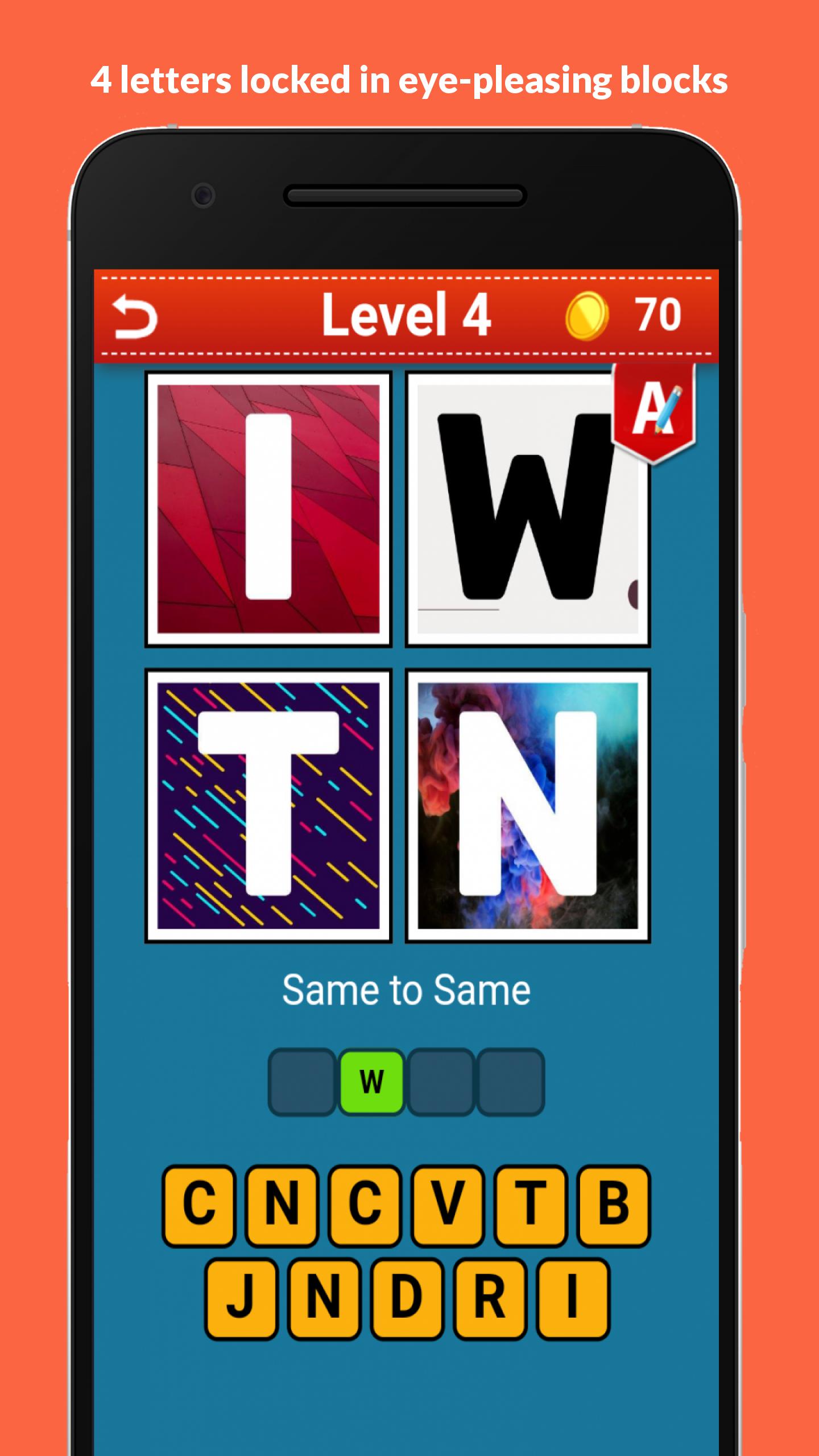C'est un jeu plus engageant et divertissant quand il s'agit de "deviner le mot". L'idée est simple ici. À chaque niveau, vous rencontrerez quatre lettres. Tout ce que vous avez à faire est de former un mot significatif. Chaque niveau est fourni avec quelques conseils utiles ainsi que les significations des mots pour résoudre le puzzle. Testez vos connaissances ou ajoutez simplement de nouveaux mots à votre vocabulaire.