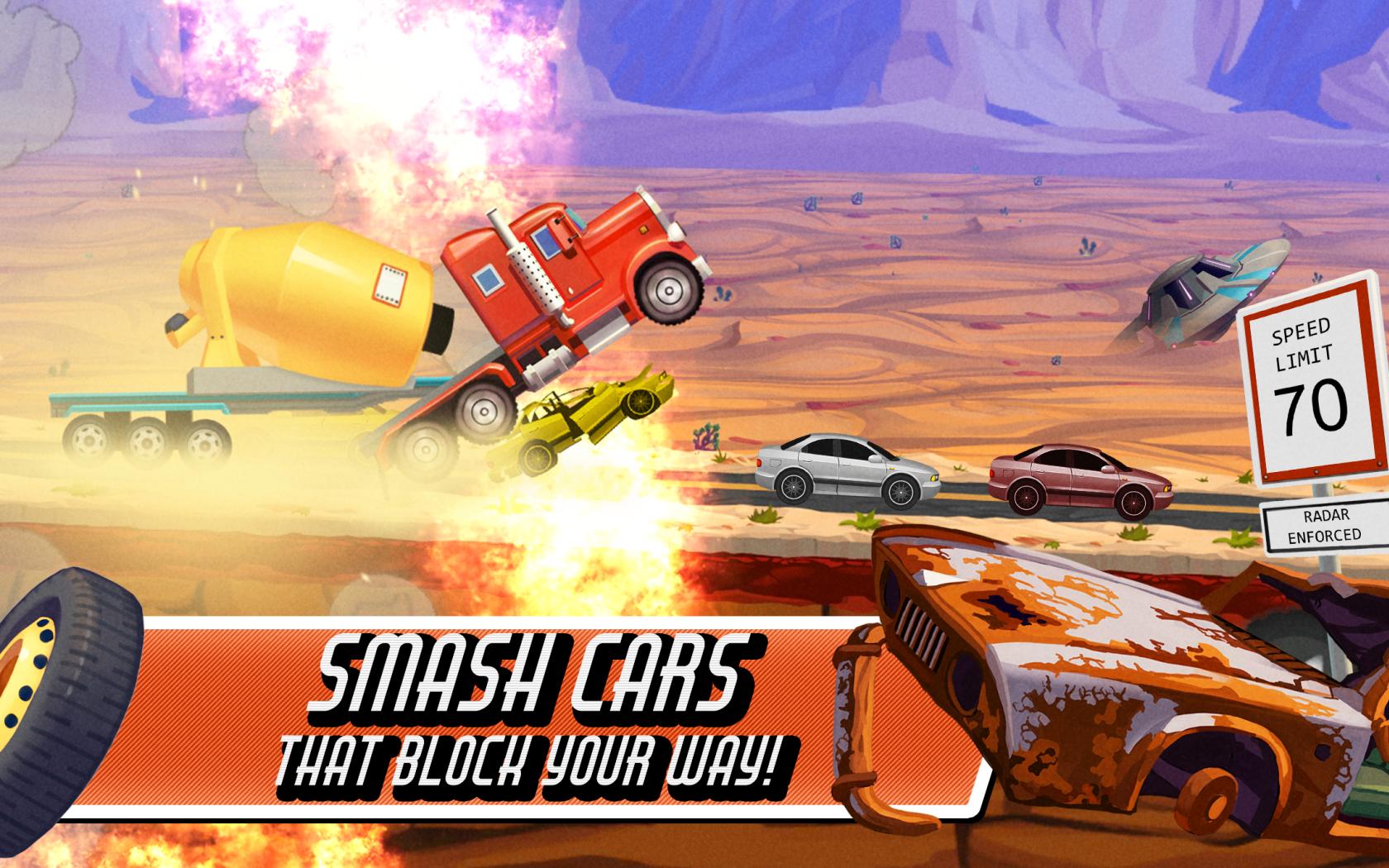 Les jeux de camions sont vraiment divertissants! Essayez différents types de transporteurs et conduisez à la route 66! Si vous souhaitez conduire des véhicules uniques, personnalisez les camions et avez votre propre camion américain. Tous les transporteurs sont fabriqués pour des voyages à longue distance. Regardez les panneaux de signalisation et protégez les gros camions. Vos camions peuvent être en danger dans l'eau toxique, les lacunes de la route ou les fils électriques. Continuez à vous concentrer sur votre camion de fret et essayez d'éviter l'attaque du spatial extraterrestre et l'invasion des extraterrestres.