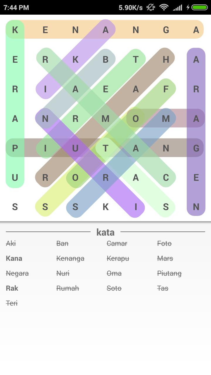 Cari Kata Indonesia est un jeu simple à la recherche de mots aléatoires. Pratiquez votre concentration et votre précision pour trouver les mots aléatoires des dernières images, facile à jouer, il suffit de glisser le remorqueur aléatoire -war qui est caché selon la colonne inférieure. À la recherche de mots indonésiens