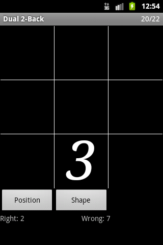 Améliorez votre intelligence fluide et votre mémoire à court terme. Faire correspondre les fonctionnalités des symboles qui apparaissent à l'écran avec ceux qui montraient auparavant. Voir: http://en.wikipedia.org/wiki/N-Back