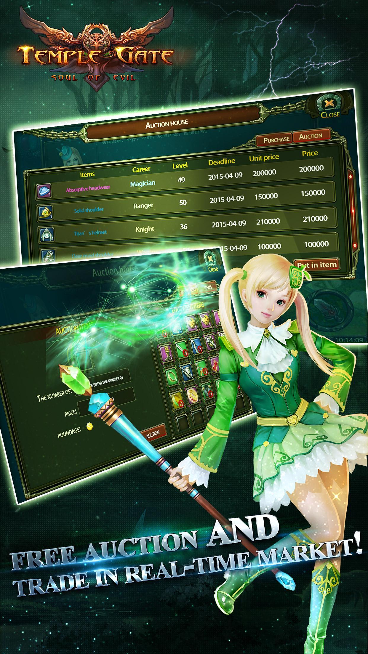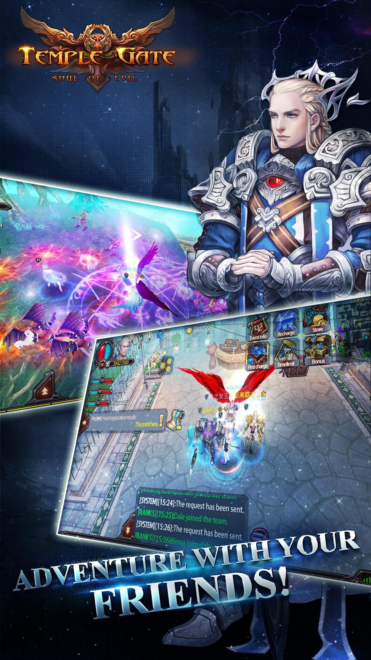 Bienvenue à Temple Gate-Le plus attendu MMORPG + ARPG Mobile Excellent travail de 2015, un effet d'éclairage parfait combinant avec un gameplay super interactif! Les multijoueurs jouent ensemble, ne jamais être seul!