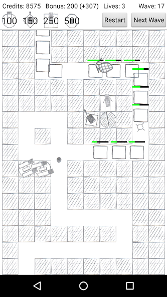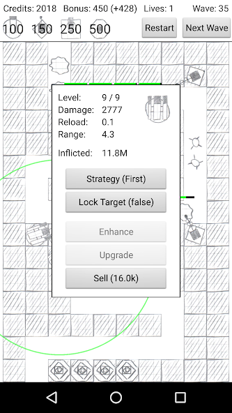 • Achetez de nouvelles tours en faisant glisser une tour de l'inventaire en haut sur le terrain. Assurez-vous d'avoir suffisamment de crédits.