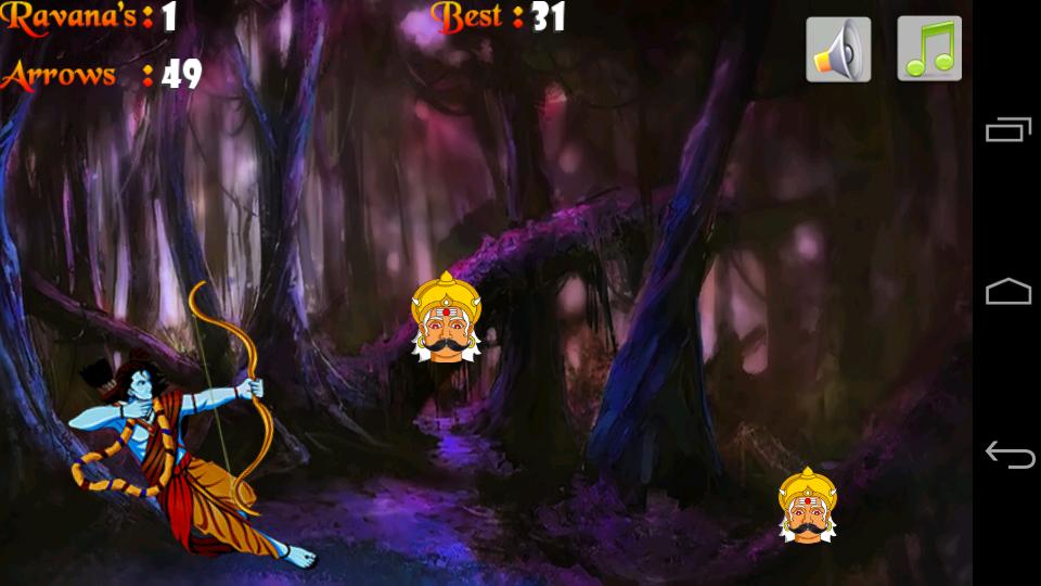 Arrow shooting game to kill the Ravana heads with Lord Sree Rama bow and arrow..