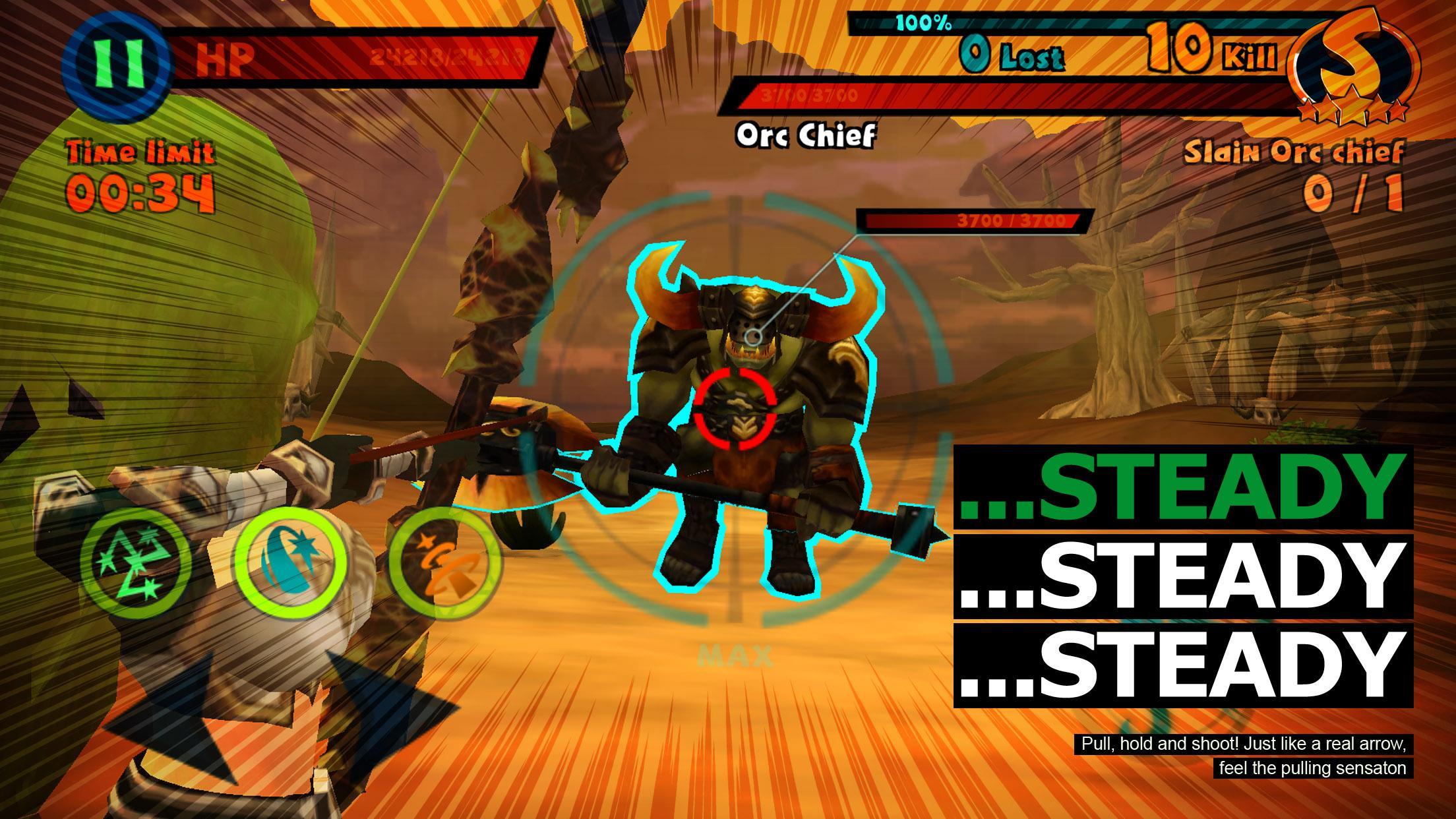 Pull, hold and shoot! Just like a real arrow, feel the pulling sensation with innovative skill-aiming controls.