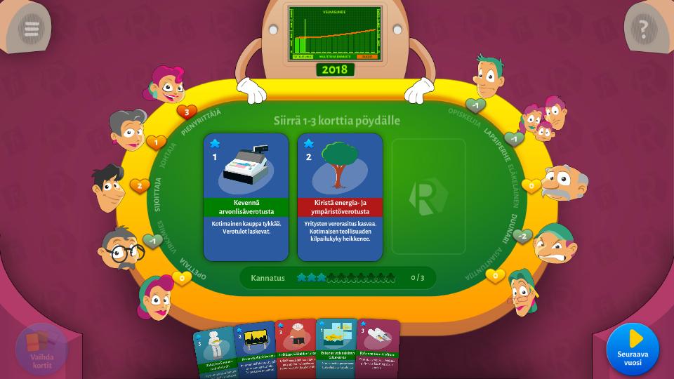 In the game you will be the Prime Minister of Finland and your goal is to stabilize the state's debt relationship by the end of 2030.