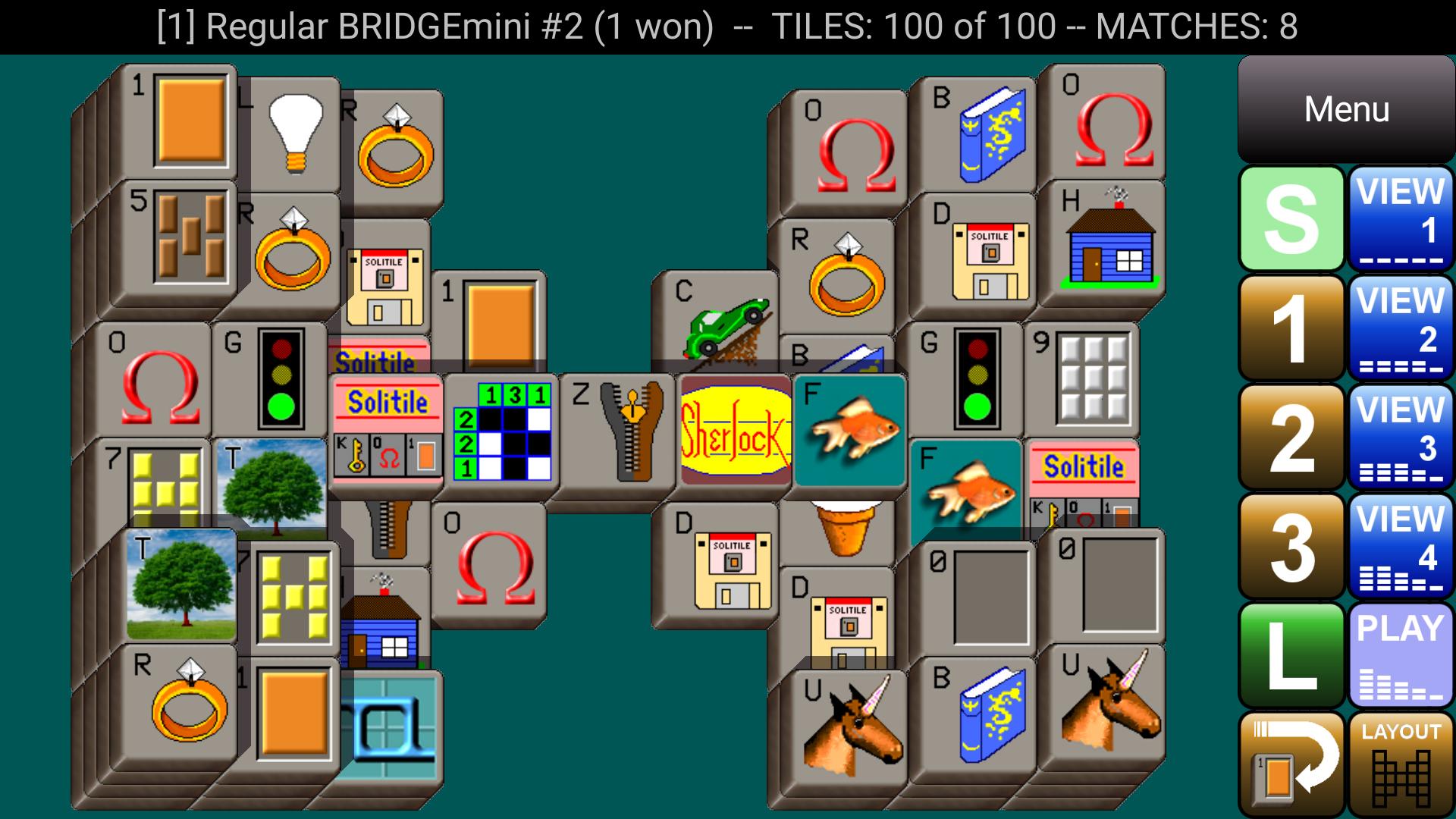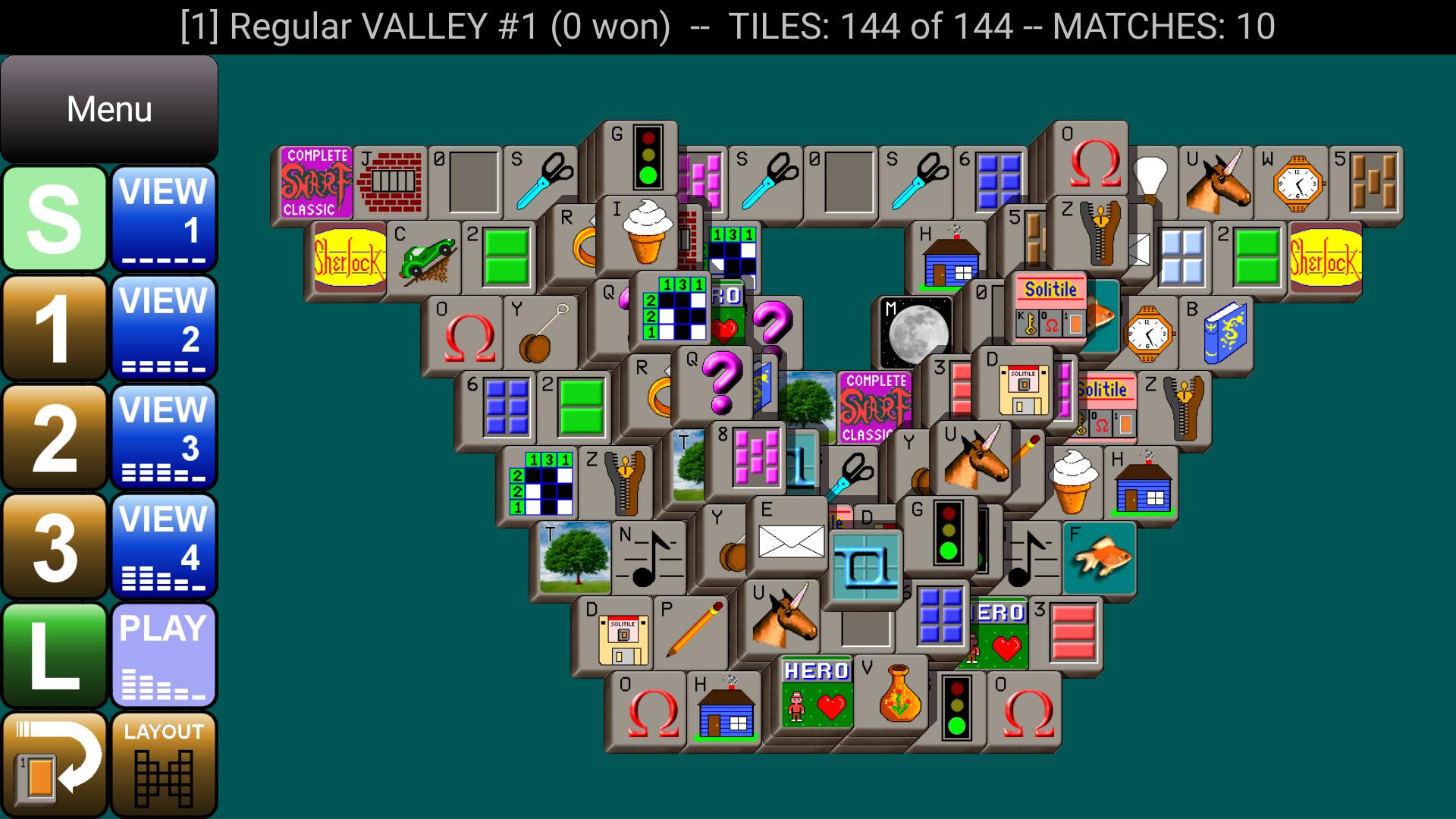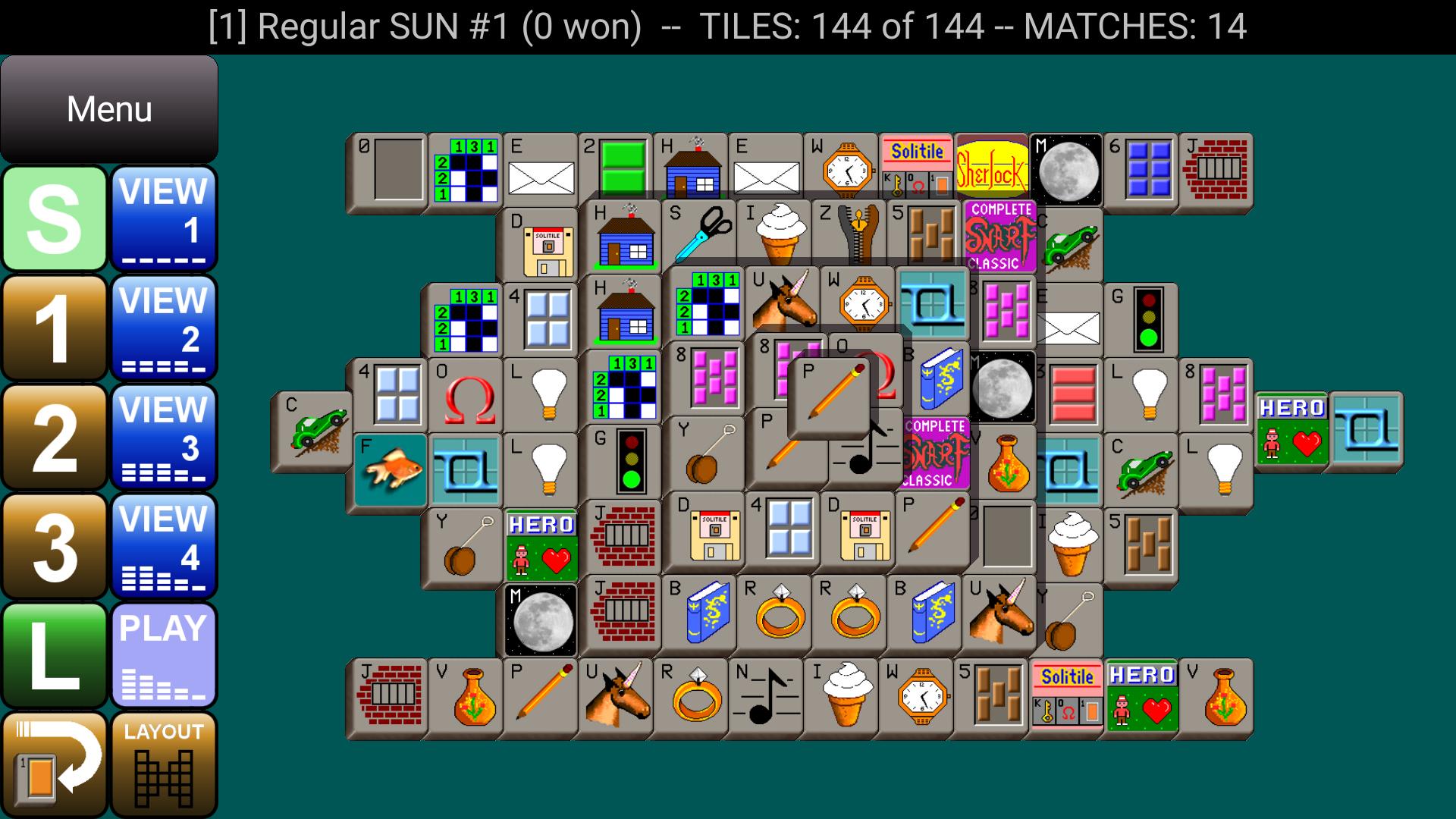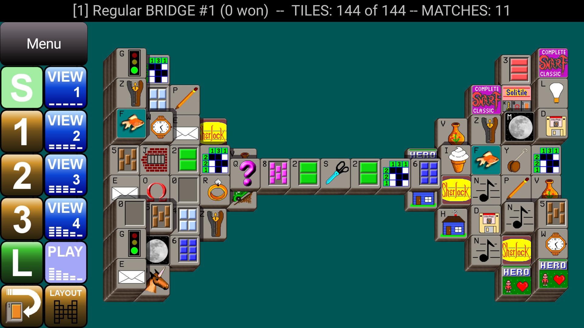 Remove pairs of matching tiles, 16 layouts, 4 tile sets, 160 puzzles!