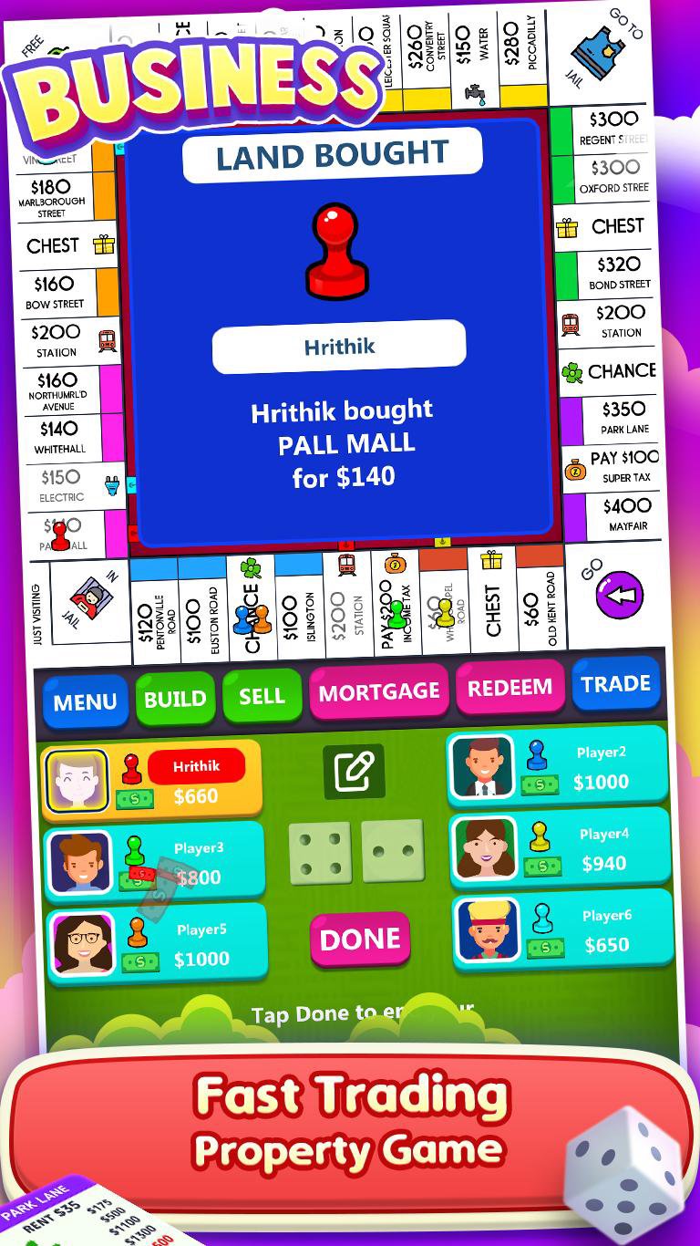 The game objective is to remain financially solvent while forcing opponents into bankruptcy by trading i.e. buying, selling and developing pieces of property.