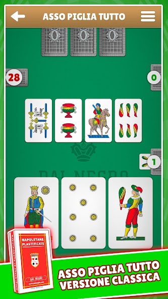 Dal Negro presents the best 2021 Italian Asso Piglia Tutto game free for Android, the only one with the original cards that since generations sign your family's happy moments.