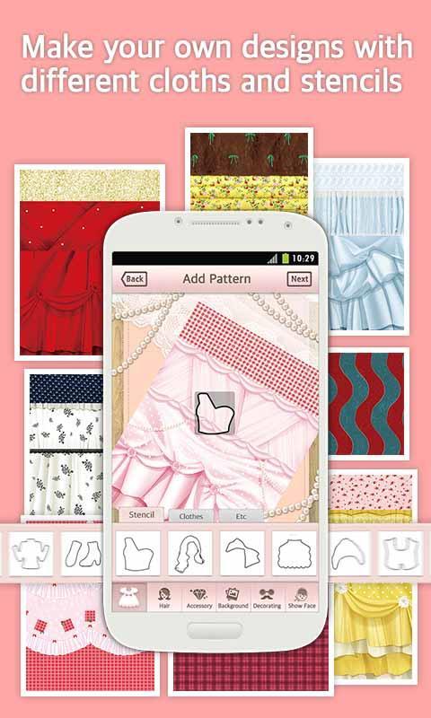 'I am a Designer' has clothes, hair and accessory styles as well as clothing patterns that you can use to design clothes, you can add your own face to the model and experience that, and by decorating and coloring things, you can improve your creativity and imagination with this app.