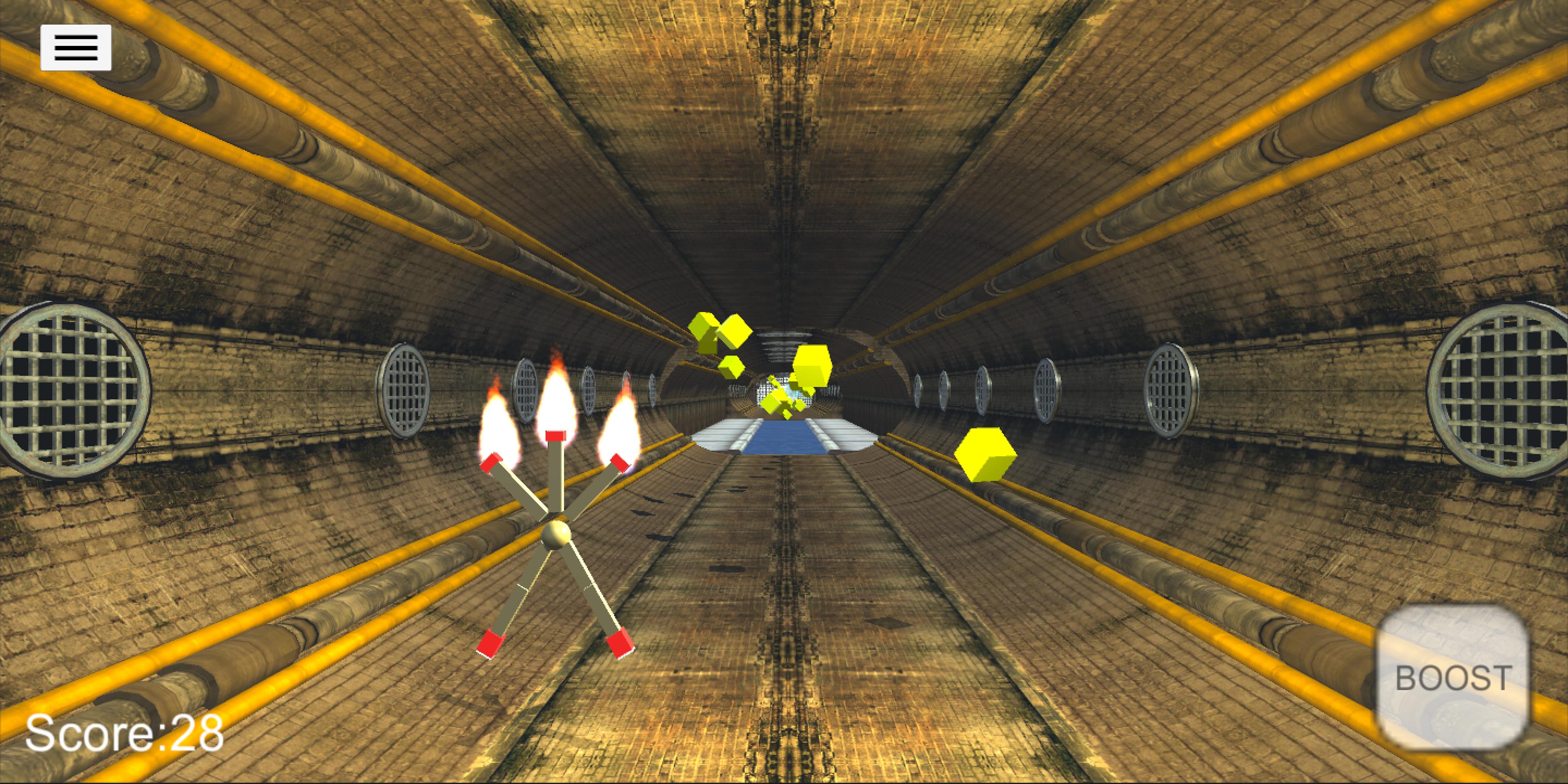 Collect the yellow boxes for points, but be careful not to touch your head, legs or arms as they will strike the match and catch fire. If that happens use boost to get to the nearest water to put out the fire.