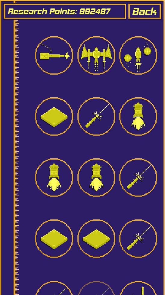 - Research new technologies and ship parts by spending Research Pointed earned in the Testing Simulator
