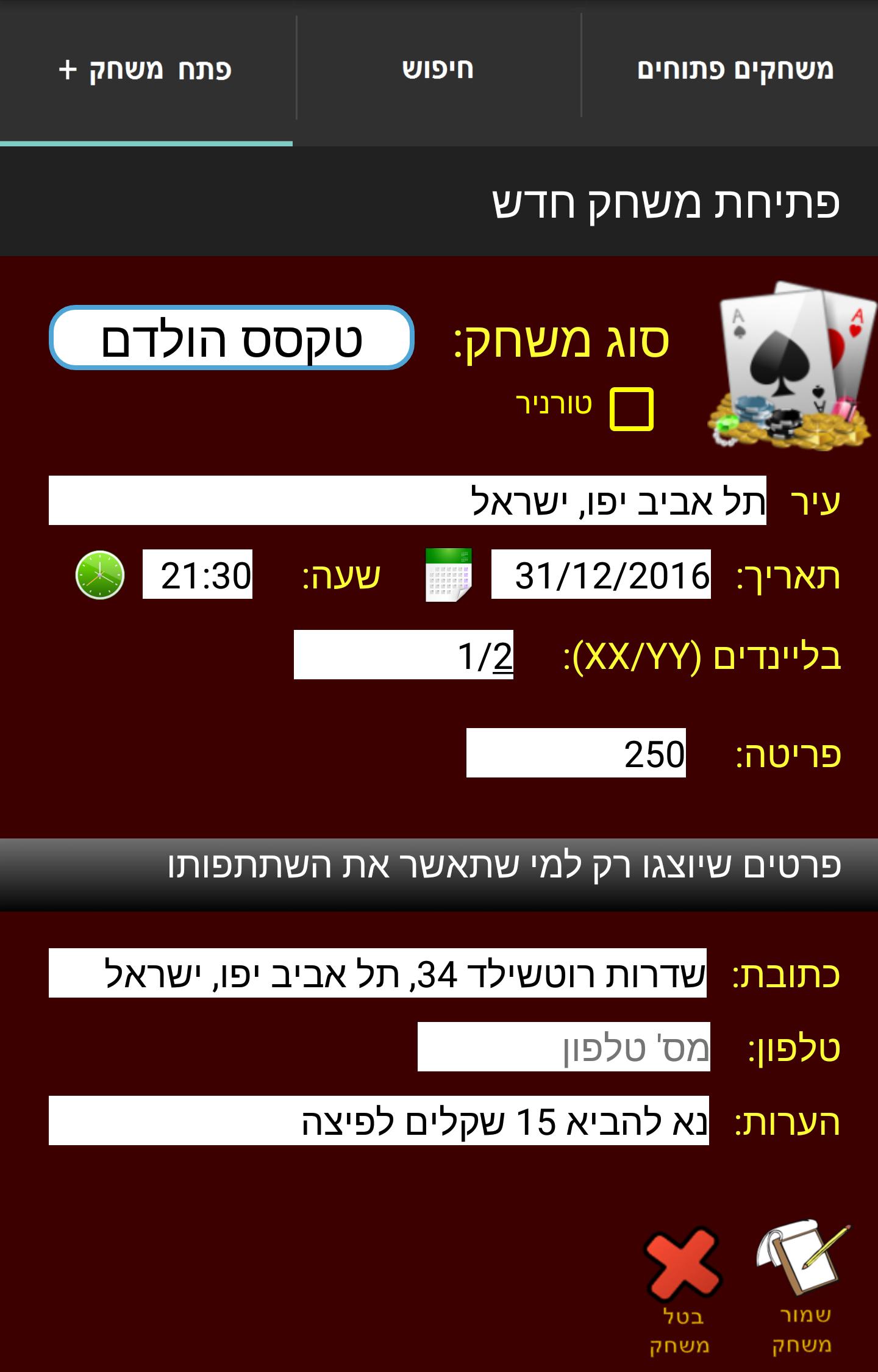 It's your Poker night and you don't have where to play? you're in the right place! Here you could find games all over the country and play every day and every night! there are currently hundreds of players registered to PokerNight application and numberless open games waiting just for you! This is an interactive app which keeps you posted and send updated for games you registered, games you are hosting, or just chat among new friends you met in this app