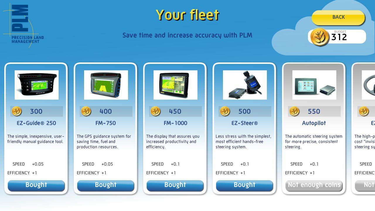 Cultivate your fields, earn coins and buy Precision Land Management system that will increase speed and performance of your agriculture machinery.