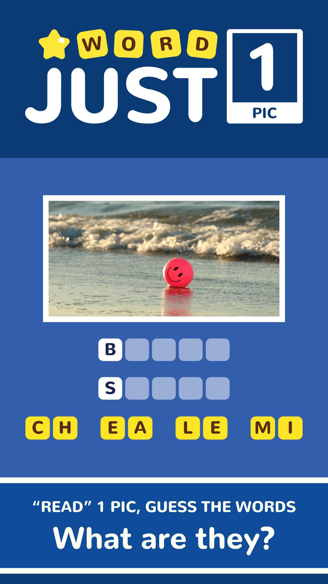 Just 1 Pic is a simple yet addictive free word game where you guess words with Just 1 Pic!