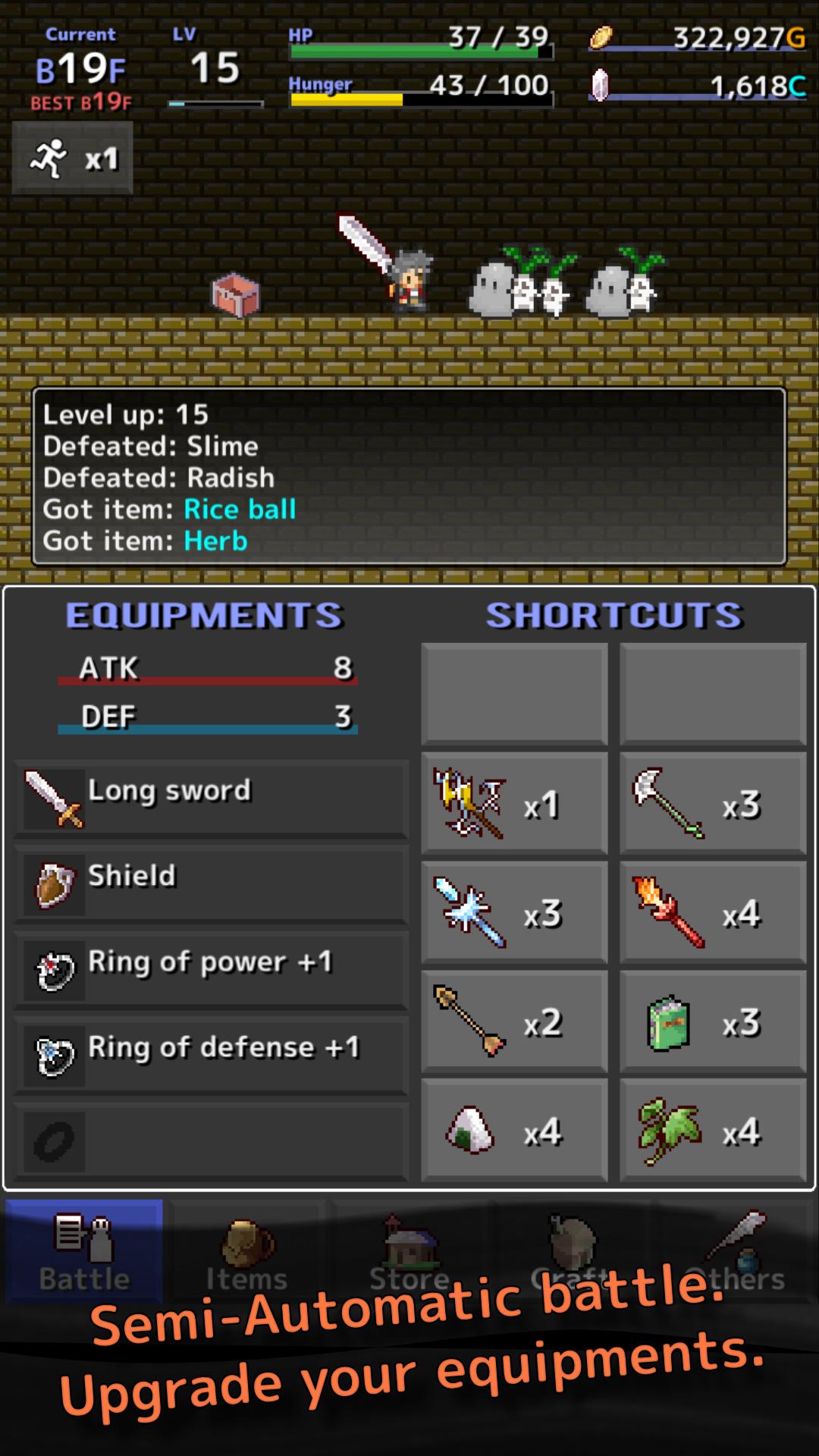 Upgrade your equipments and items to reach the basement 1000th floor.