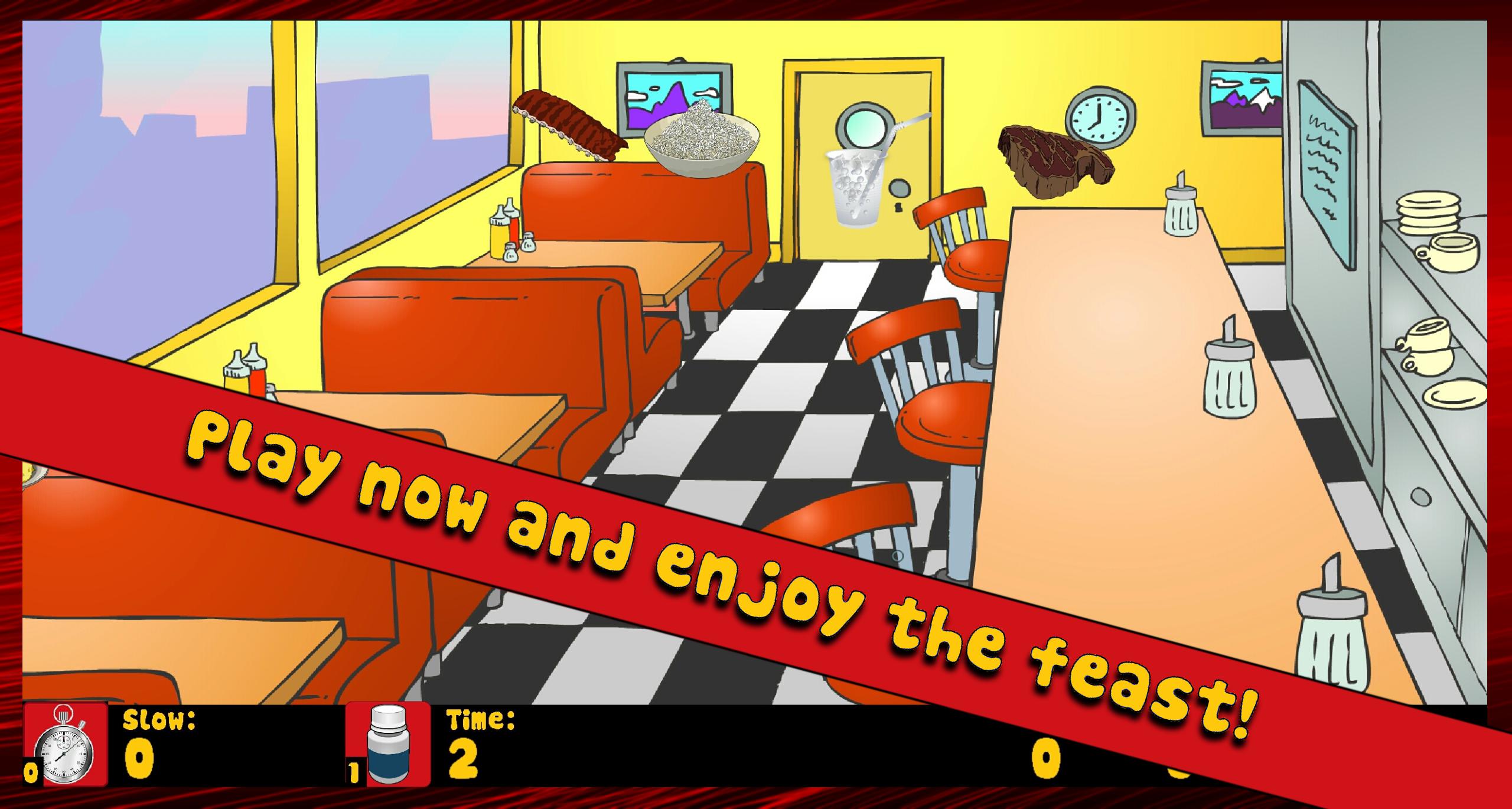 Belly Buster features three modes, Restaurant Tour which breaks up the game into levels and allows the use of different boosters, Buffet which runs through the content continuously, and a nibble mode which gives you an opportunity to eat your way through a random sequence of items in a short amount of time. And of course, there are various ways to increase your score such as score multipliers, combos, and finishing bonuses!