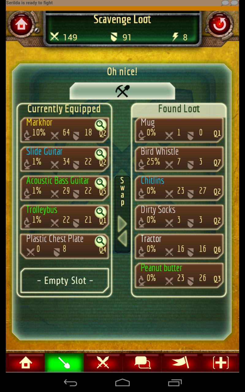 Scavenge Wars is a lightweight homage to role-playing (RPG) and loot collection games. Your addiction level is guaranteed to rise the more you play!