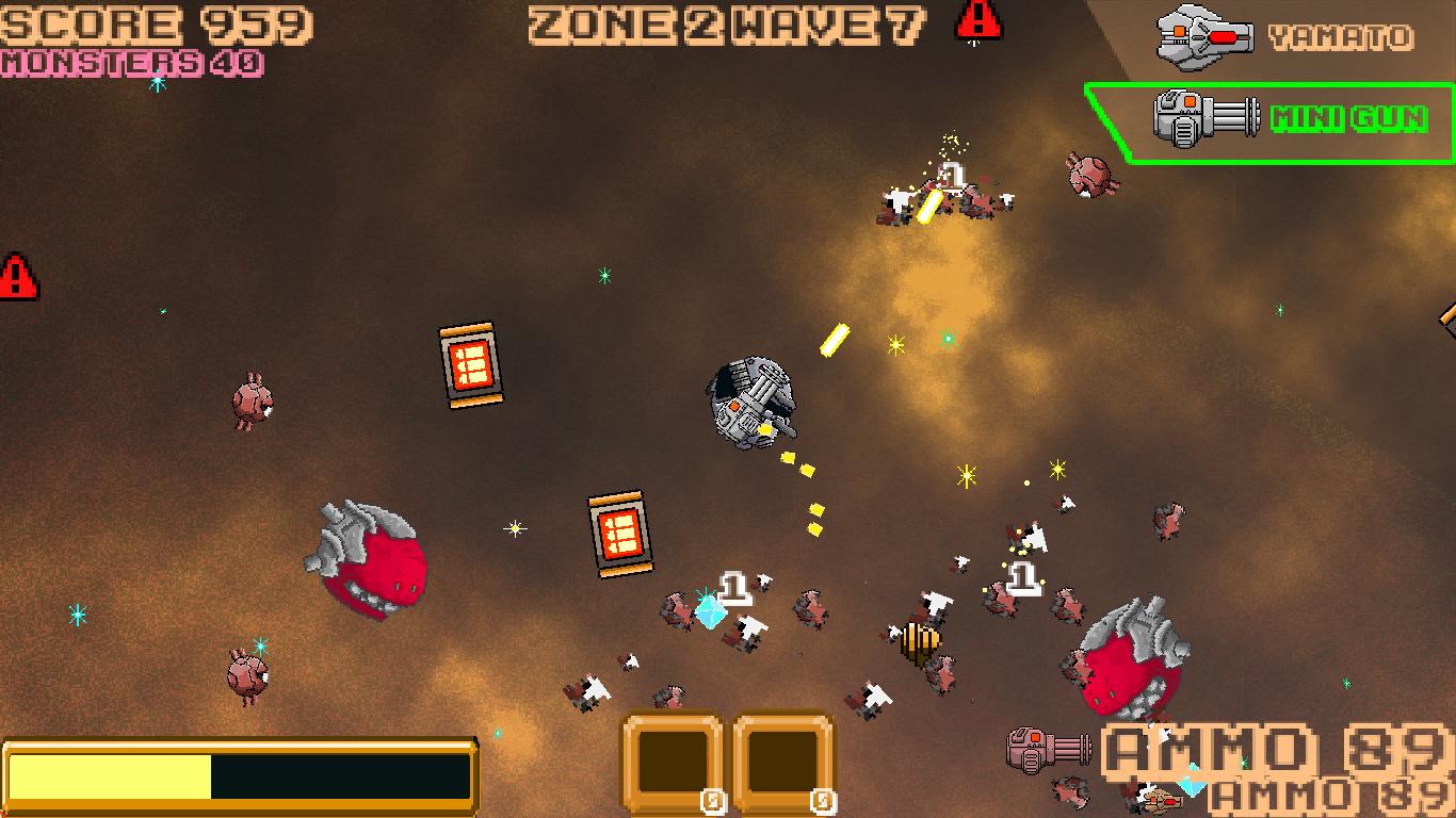 Pods to Riches is a survival shooter game that set in a place where no safe haven exists! Space! Riding in your M1K4N [Mark 2], armed with a variety of weapons ranging from missiles to laser guns, you will be facing horde of aliens that are after your patties!