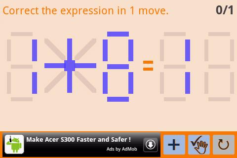 You are required to move one or more sticks and correct the expression. Number of moves depends on game level.