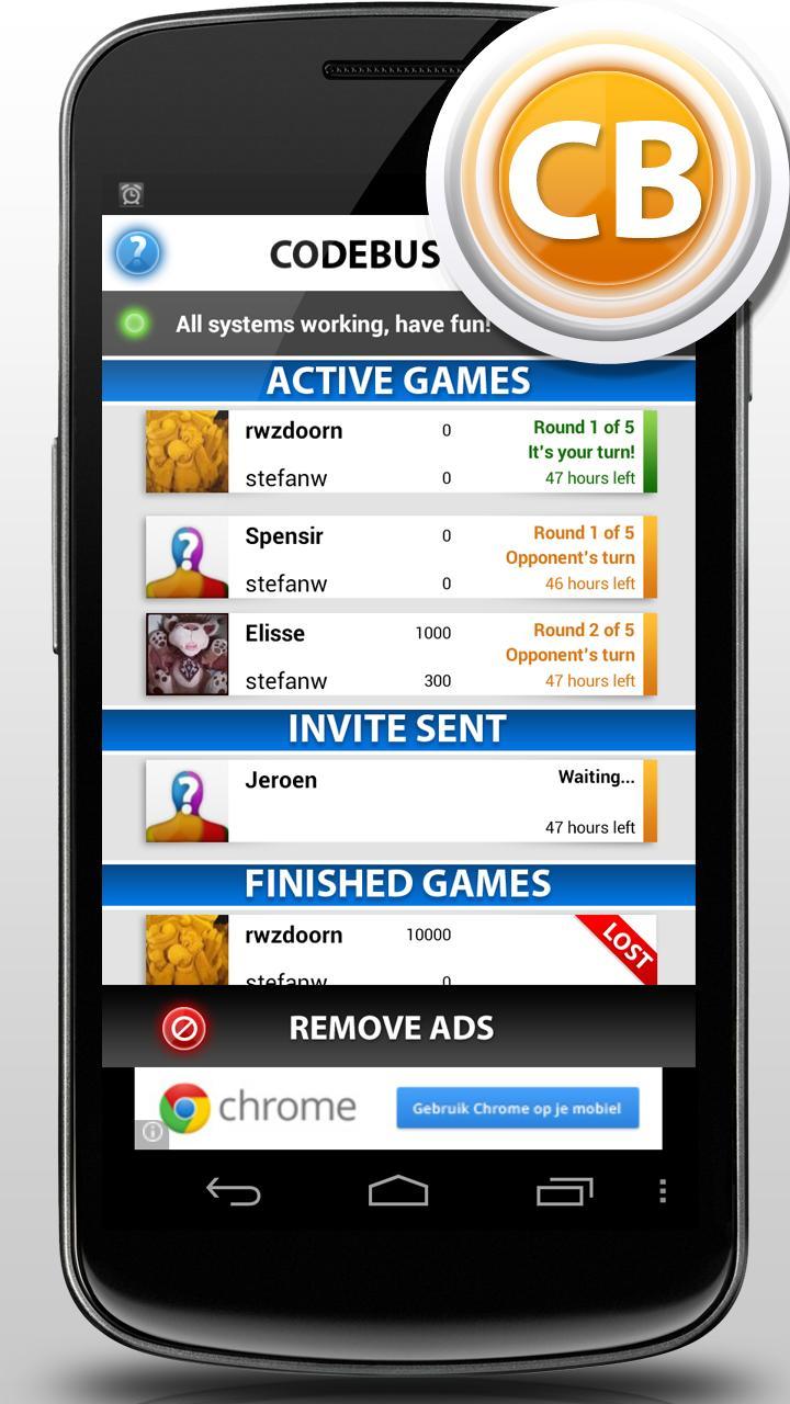 Just create a free Dreamix Online account in 10 seconds, or log in through Facebook and start playing against people all over the world. Every turn of CodeBusters takes 2 to 5 minutes, making it a perfect game for when you’re on-the-go, taking a break or just have a few minutes to waste.