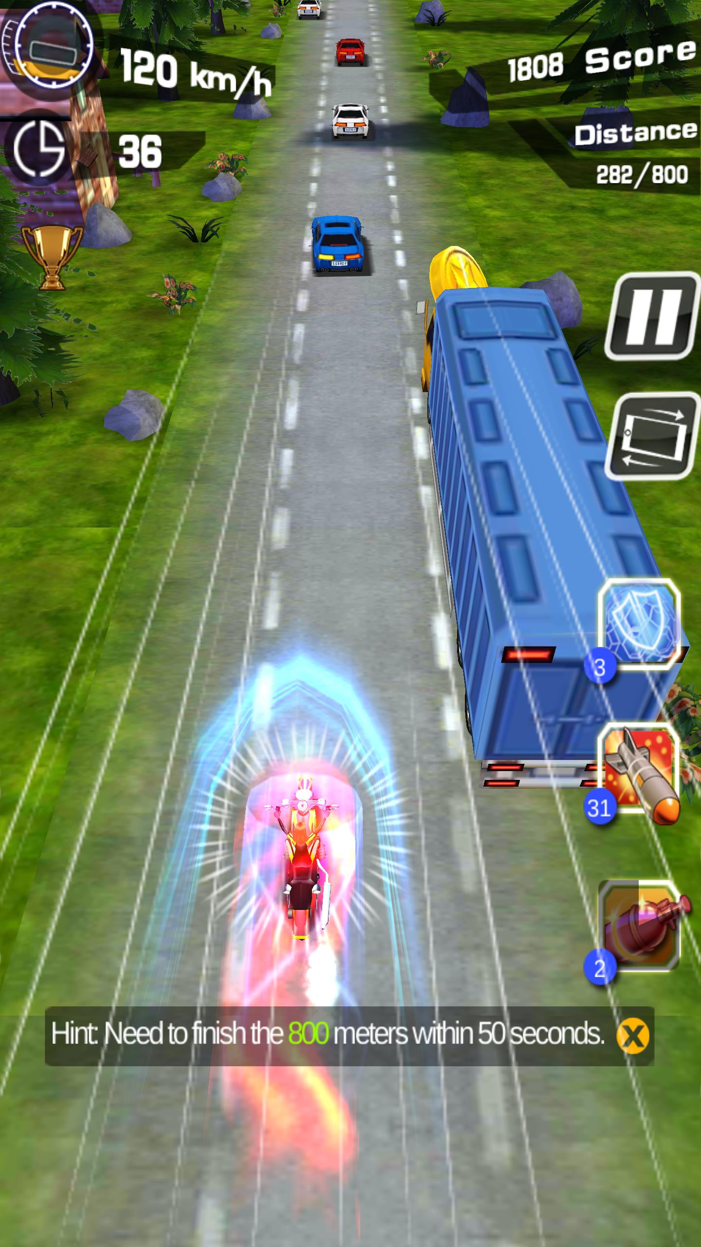 Carefully control your moto with normal and fast speeds in the rush traffic!
