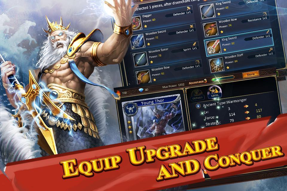 ▶ Collect the greatest heroes from different realms. Call upon the powers of Thor, Hercules, Zeus and the goddess Athena to aid you in battle.