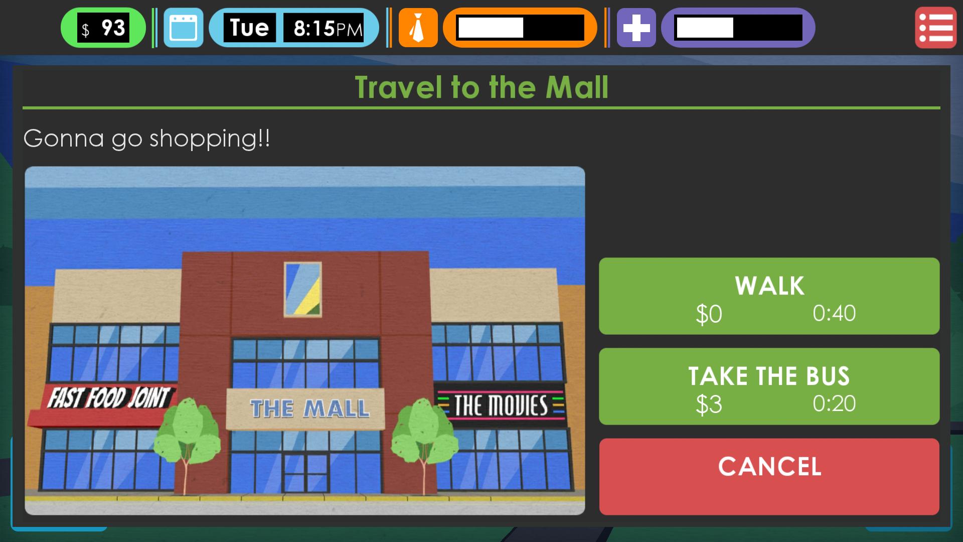 You’ve got the job, now comes the hard part: balancing all of life’s competing demands. JobPro: My Life is about YOUR LIFE, where you must make decisions around your work, health, and social life to try and stay on top of it all. Spend a week choosing what to eat, who to hang out with, how to spend your money, and where to spend your time. Practice general life skills in JobPro: My Life and see if you can maintain your professionalism and well-being throughout the week.