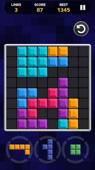 Place shapes in order to create and clear full lines on the screen both vertically and horizontally, get points and unlock achievements. The game continues until you can make moves, so don't forget to keep free space for new shapes.
