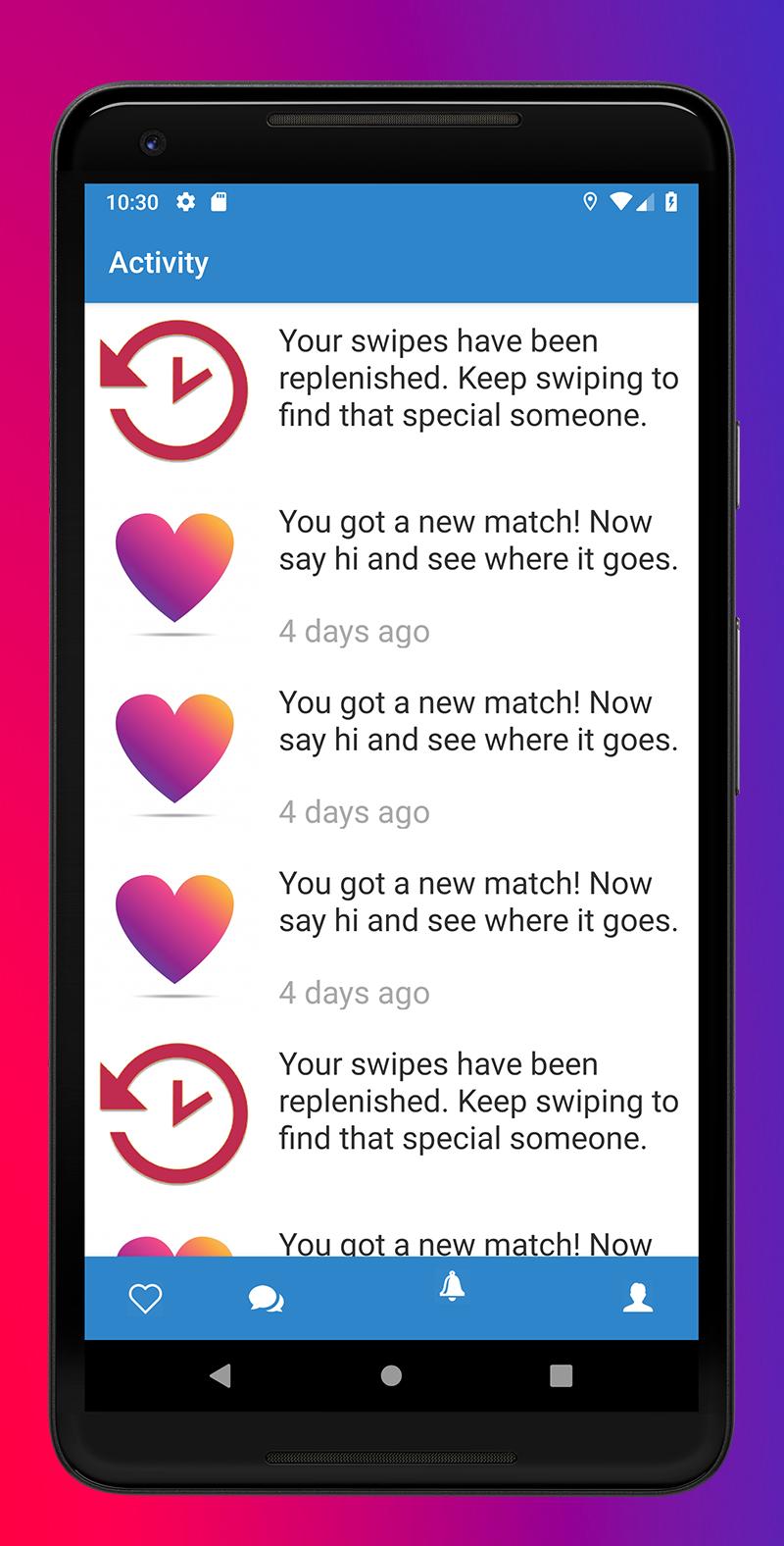 - Tetap Diperbarui: Pemberitahuan Beri tahu Anda kapan Anda memiliki kecocokan baru atau menerima pesan