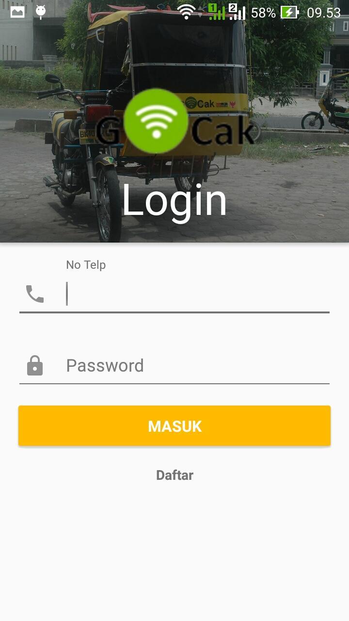 Dengan aplikasi Go-Cak anda tidak perlu memanggil becak dengan cara tradisional seperti yang biasa dilakukan pada umumnya. Anda cukup menggunakan aplikasi Go-Cak dimanapun anda berada dan kapanpun anda memesan, aplikasi Go-Cak siap membantu anda dalam bertransportasi yang Aman, Nyaman, dan Pasti.