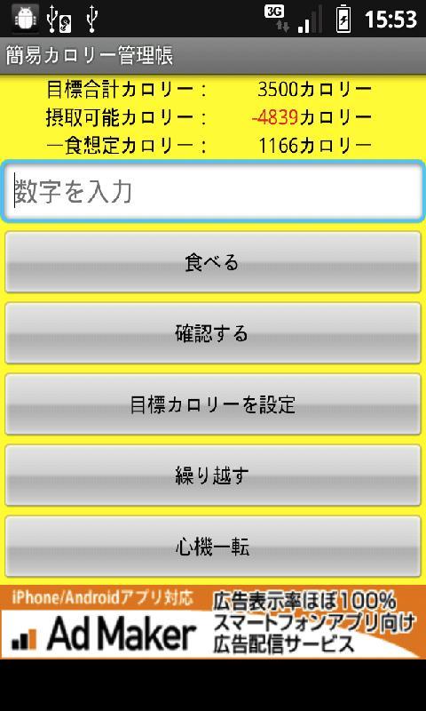 Masukkan kalori Anda, dengan menekan tombol yang sesuai akan menghitung sisa kalori yang dapat dicerna.