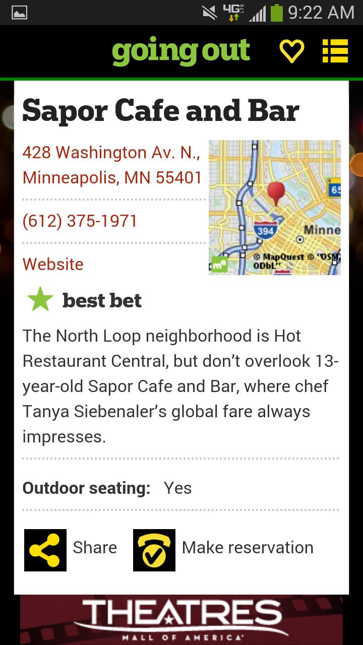 • Cari berdasarkan tanggal, kata kunci, lokasi GPS, zip atau kota. Atau filter berdasarkan lingkungan, ulasan Star Tribune, peringkat, rekomendasi dan harga (jika tersedia)