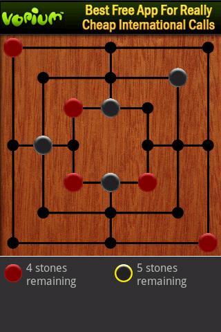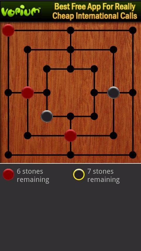 Game Morris sembilan pria yang terkenal di tangan Anda. Versi gratis dari aplikasi ini memberi Anda mode pemain-VS-pemain pada satu ponsel dan varian game yang berbeda (Six Men's Morris, Nine Men's Morris, Twelve Men's Morris).