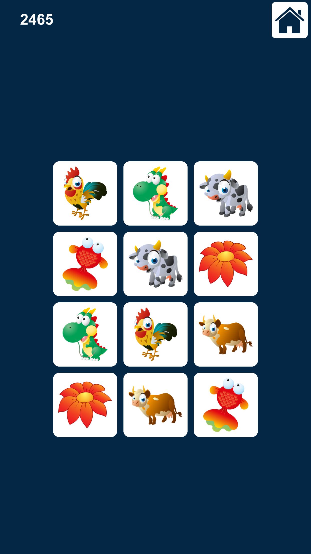 Gim ini adalah tentang mencocokkan kartu yang sama untuk melatih dan meningkatkan memori, konsentrasi, perhatian, akurasi, pengakuan, kecepatan pemrosesan, keterampilan logika dan kinerja otak untuk semua usia orang dewasa dan anak -anak. Anda dapat mencocokkan gambar, mencocokkan angka, dan persamaan matematika yang cocok.