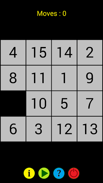 Numero (alias 15-puzzle) adalah teka-teki geser yang terdiri dari kisi 4x4 ubin persegi bernomor secara acak dengan satu ubin yang hilang.