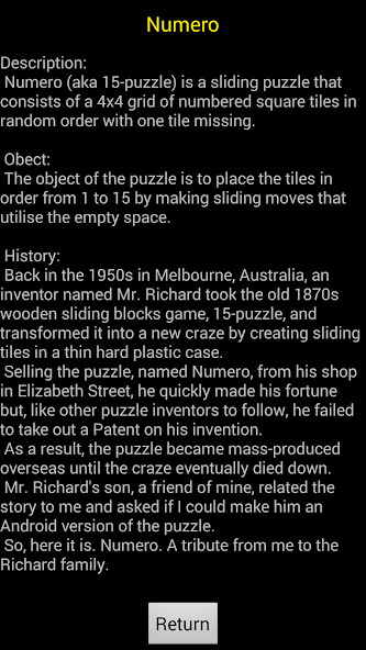 Numero (alias 15-puzzle) adalah teka-teki geser yang menyenangkan dan menghibur untuk segala usia.