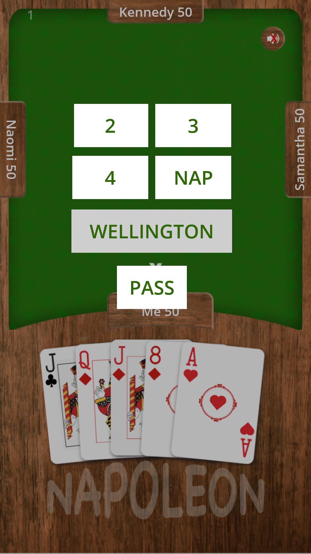 NAP (Napoleon) adalah trik langsung mengambil game di mana pemain masing -masing menerima lima kartu; Siapa pun yang mengajukan sejumlah trik tertinggi memilih Trump dan mencoba untuk memenangkan setidaknya sebanyak itu.