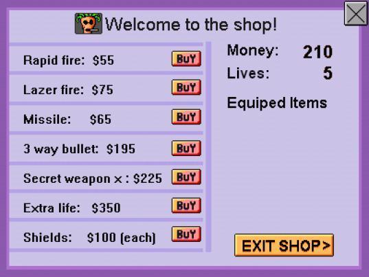 Tujuan dari permainan ini adalah untuk mengalahkan gerombolan kapal alien yang mendekat, dan akhirnya bos tingkat. Bagian keren dari permainan ini melibatkan membeli senjata dan peralatan baru di toko, yang dikunjungi di antara tahap.
