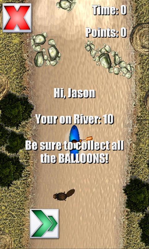 Balap turun jeram dan kumpulkan pelampung untuk mendapatkan skor tinggi. 12 sungai di semua, 3 area pemandangan, dari lambat hingga api. Hindari berang -berang, batu, pohon saat pergi di bawah jembatan dan melalui air putih.