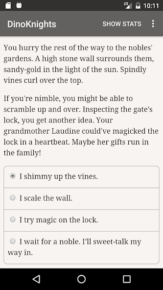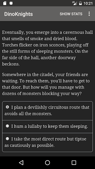 " DinoKnights " adalah novel fantasi interaktif 177.000 kata oleh KT Bryski, di mana pilihan Anda mengendalikan cerita. Ini sepenuhnya berbasis teks-tanpa efek grafik atau suara-dan didorong oleh kekuatan imajinasi Anda yang luas dan tak terhentikan.